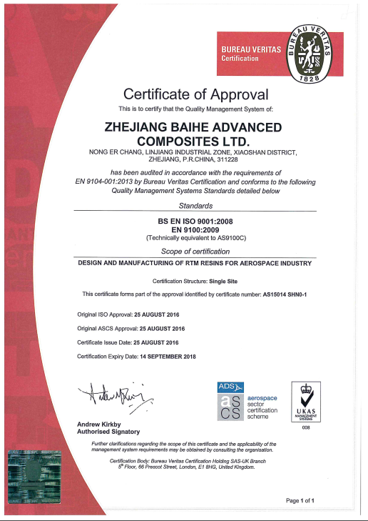 浙江百合航太复合材料有限公司成立于2014年,是集先进复合材料产品开发设计、生产、销售、服务于一体的高新技术企业, 主要产品有复合材料液体成型树脂、碳纤维、玻璃纤维和芳纶纤维预浸料、以及结构粘合剂胶膜等。